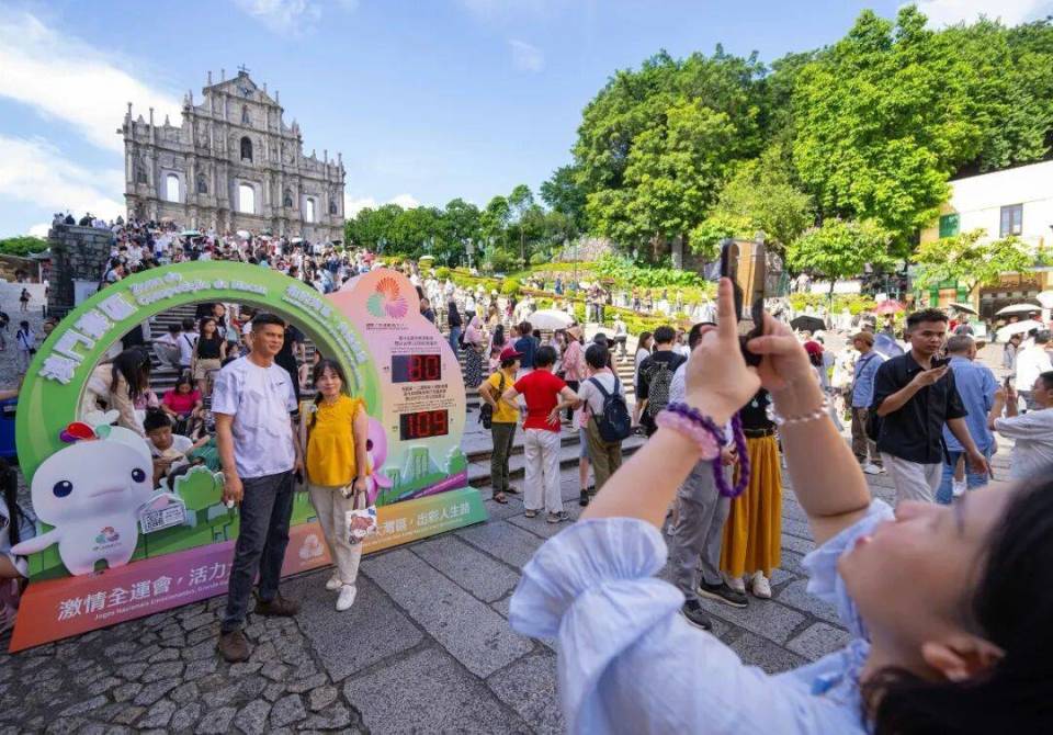 为了让市民与旅客感受到全运会的临近气氛,澳门多个地点包括:耶稣会纪念广场(大三巴)、祐汉街市公园、关闸广场、三盏灯圆形地、南湾湖景大马路行人道及氹仔运动场圆形地设置了“倒计时打卡装置”,营造全民期待的氛围,留下与全运同行的美好回忆。